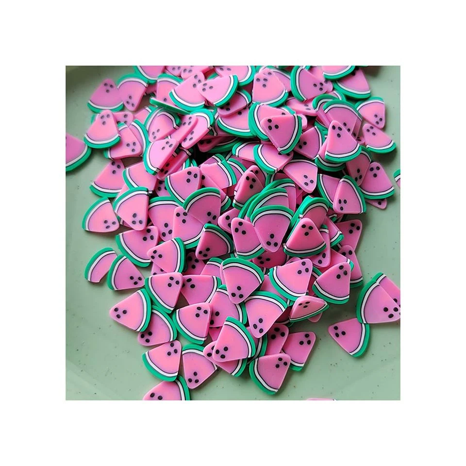 1. Одним із наших найпопулярніших продуктів є скибочки рожевого кавуна. Ці яскраві та милі шматочки м’якої глини мають форму та стиль кавуна та мають мультяшні деталі, які додають грайливий відтінок вашим творінням зі слизу.